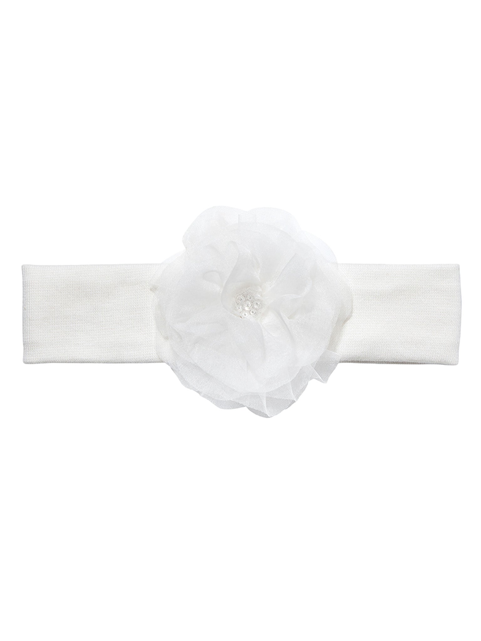 Featuring a delicate tulle bow nestled on a soft cotton jersey headband and studded at the centre with tiny jewels, the Bébé Tuscany Headband in Milk is bound to wow the room!