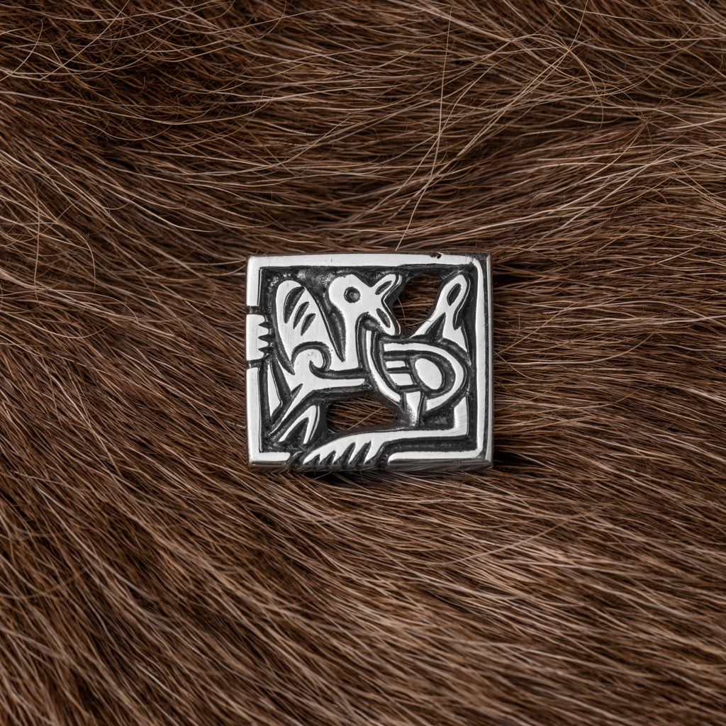 Belt decoraction based on a find from grave Bj 369 in Birka, Sweden. Use these as studs on a belt strap, or on some other item of your choice. Premake the holes in the leather, put the pins through and bend them carefully towards the centre. See the full belt reproduction here: Birka Belt
