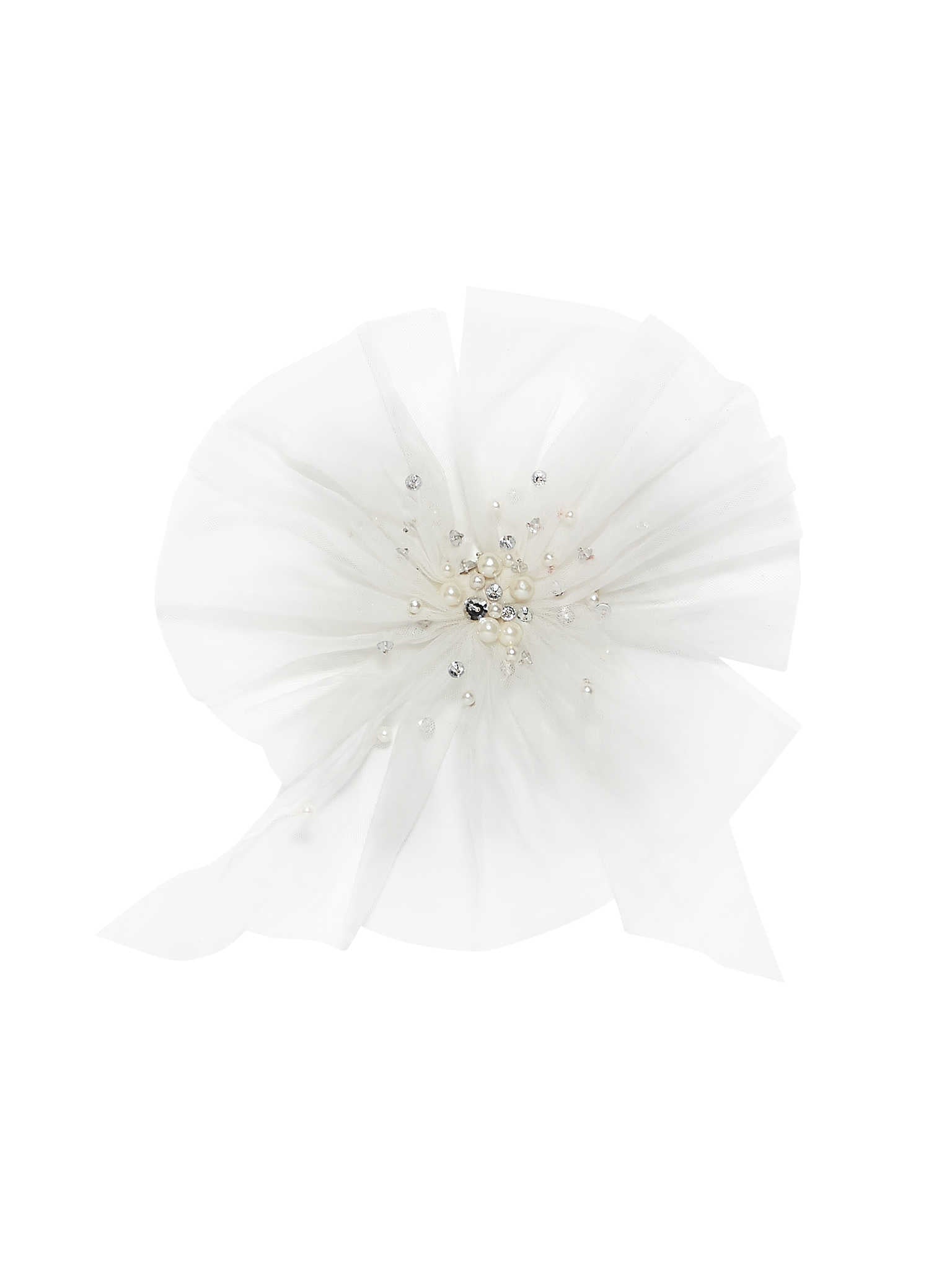 The lavish addition to any outfit, The Clara Bow Clip in Milk, will bring an element of perfection all who wear it. Designed from delicate tulle, an arrangement of pearls and sequins sit atop a metallic silver clip