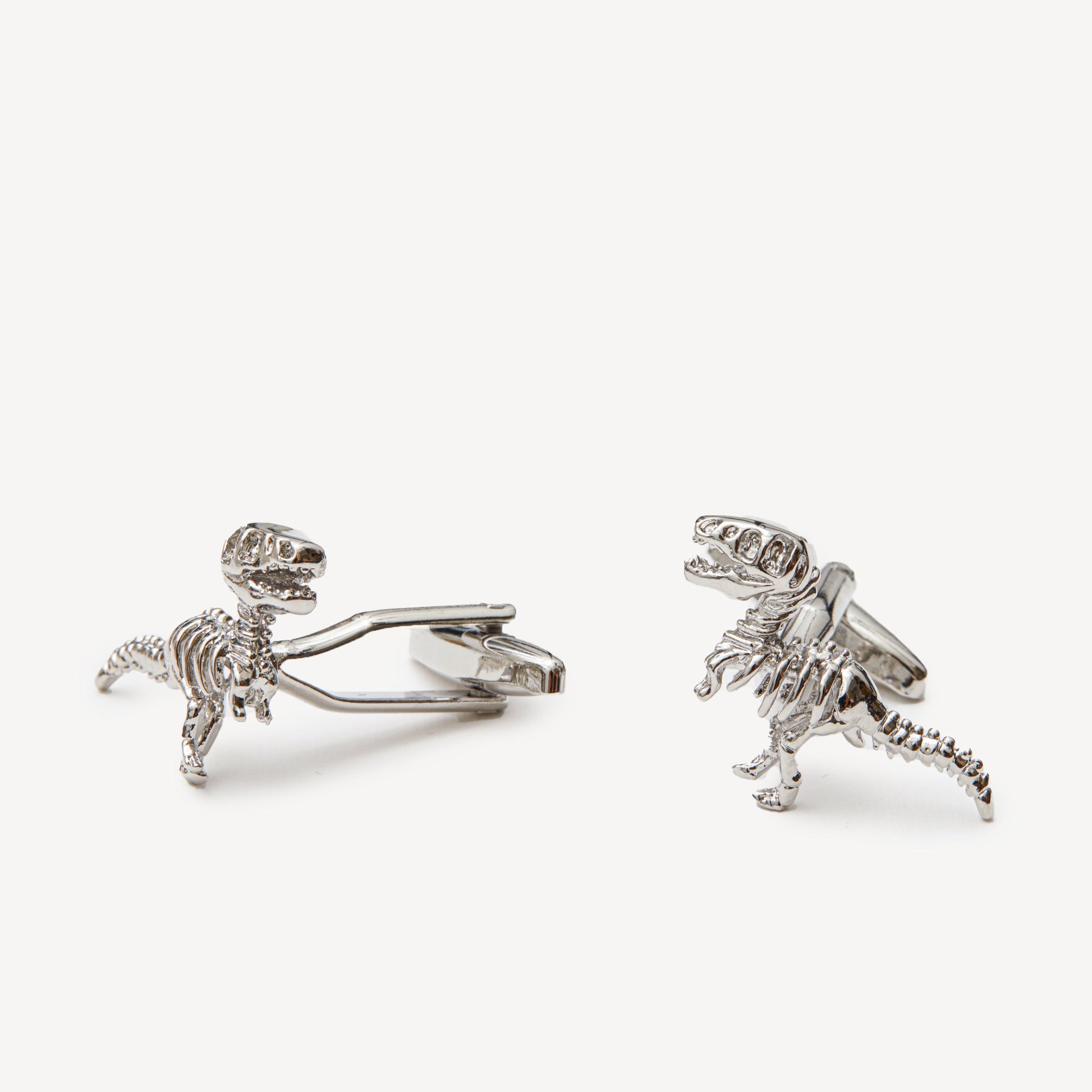 These silver dinosaur cuff links are a fun eye catching statement for any wardrobe. An accessory like this matches with almost anything, making it perfect for the work day or try dressing it up for weddings and special occasions.