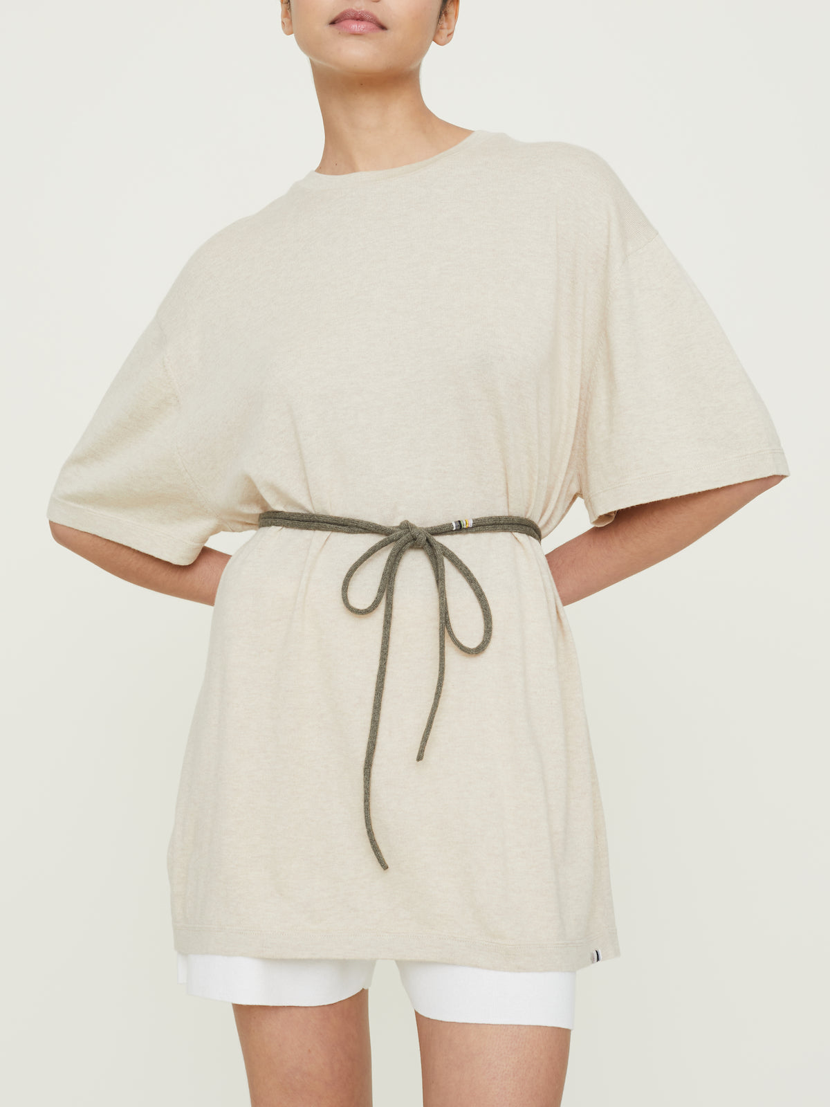 Knitted rope in khaki cashmere. Can be used as a belt, hair tie or other.