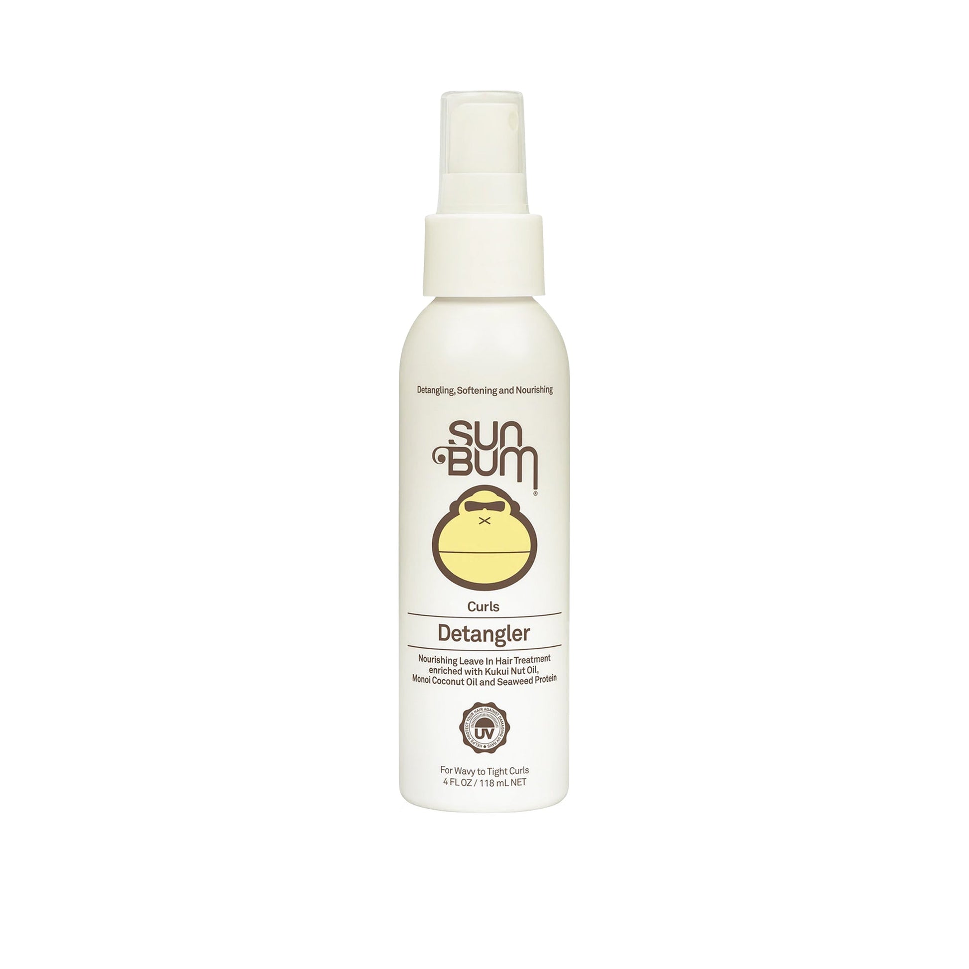 The Sun Bum Curls Detangler Spray. The Curls & Waves Detangler helps condition and smooth curly hair with a protective layer of moisture that seals in hydration and helps tame frizz, reduce breakage, and enhance natural shine. Our hair detangler also helps protect your hair from damaging UV rays and shield your precious locks from becoming dull, brittle, frizzy, and discolored.