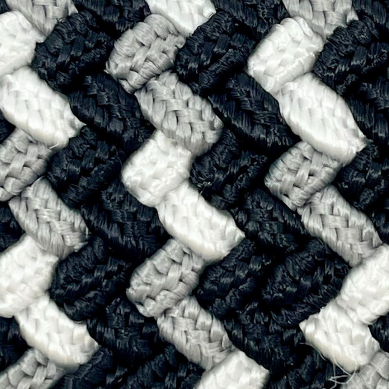 The Baja tri-color braided stretch belt. Black, White, and Grey Belt with a silver rounded buckle and dark brown leather finish stamped with the Roostas logo. An adjustable clasp goes through the woven belt, allowing for adaptable sizing. Designed for extreme comfort on and off the course.